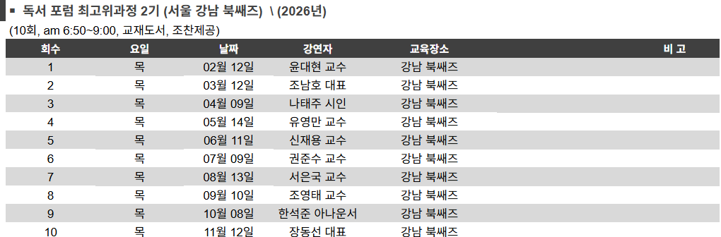 2026 대구 독서포럼 최고위 과정